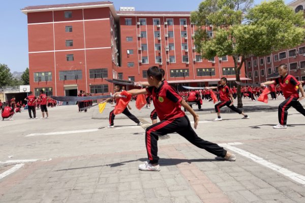 在登封嵩山少林文武学校上学虽说不能经常回家,但我校对学生的作息时间安排比较合理,从学生文化课、武术课、吃饭、休息、对于培养学生良好道德品质,形成良好的行为习惯,磨练学生的意志,具有很大的帮助。